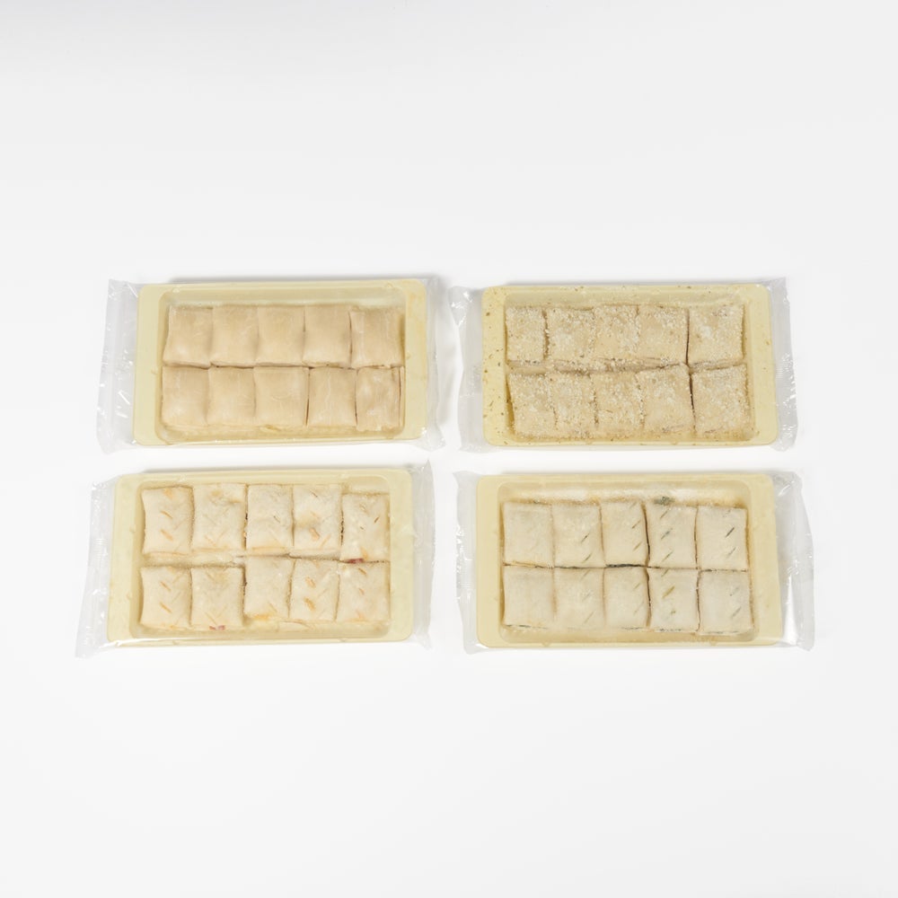 - A well rounded assortment of hors d'oeuvres. Each box includes four different types of Puff Pastries: Mushroom and Ricotta, Red Pepper and Parmesan, Spinach and Feta, and Cheese and Onion.