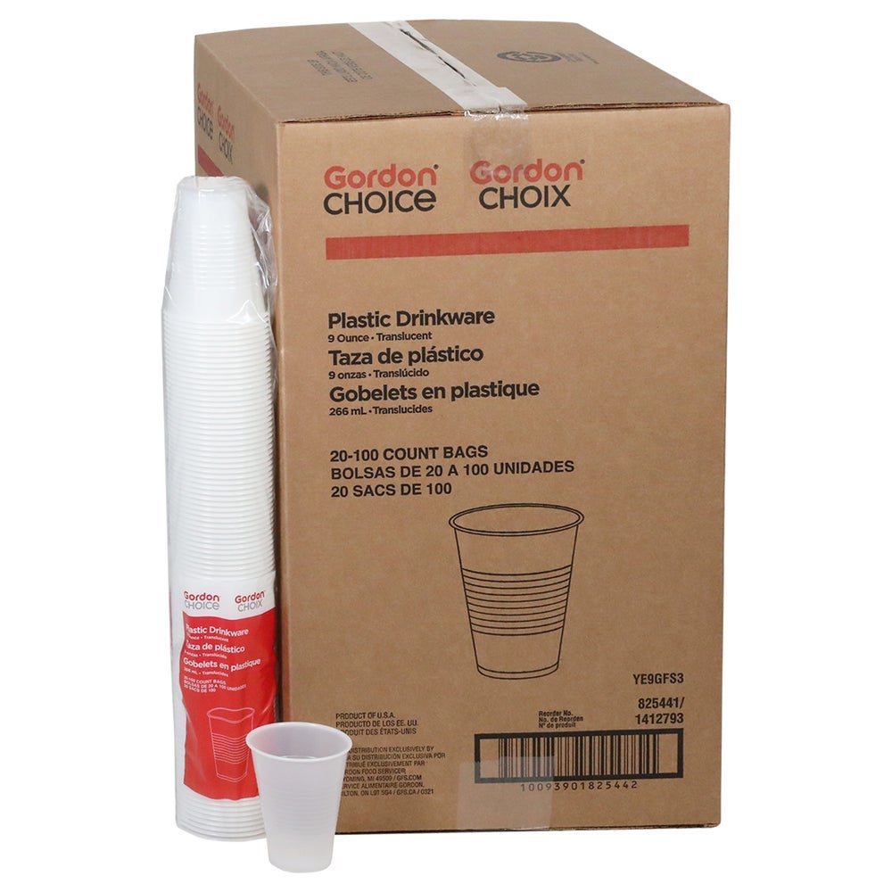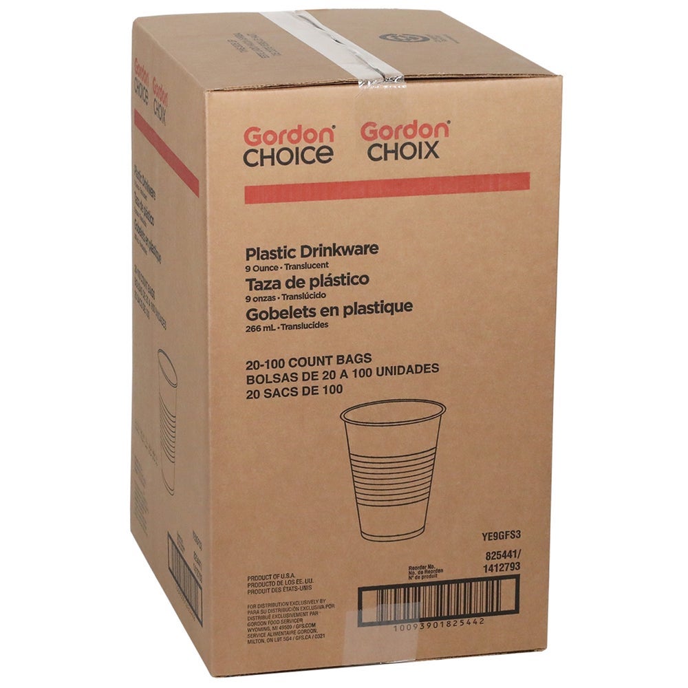 Gordon Choice 9 Ounce Plastic Cold Cups, Translucent, 100 Ct Package, 20/Case