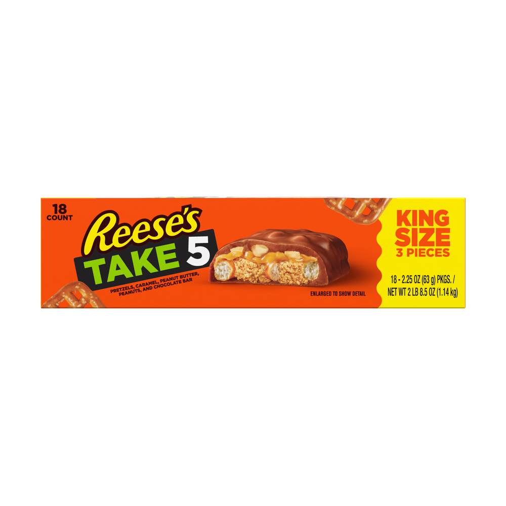 Reese's Peanut Butter Caramel Chocolate Candy Bar, Pretzels, Peanuts, 2.25 Oz Package, 18/Box