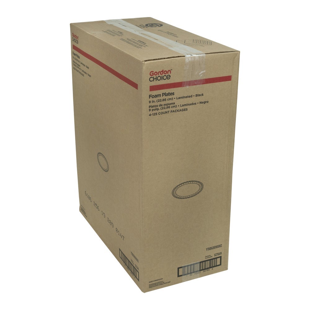 Gordon Choice 9 Inch Laminated Foam Plates, Black, Polystyrene, 125 Ct Package, 4/Case