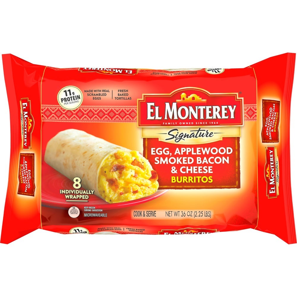 El Monterey Egg Applewood Smoked Bacon Breakfast Burritos, Cheese, Cook & Serve, 8 Ct Package, 6/Case