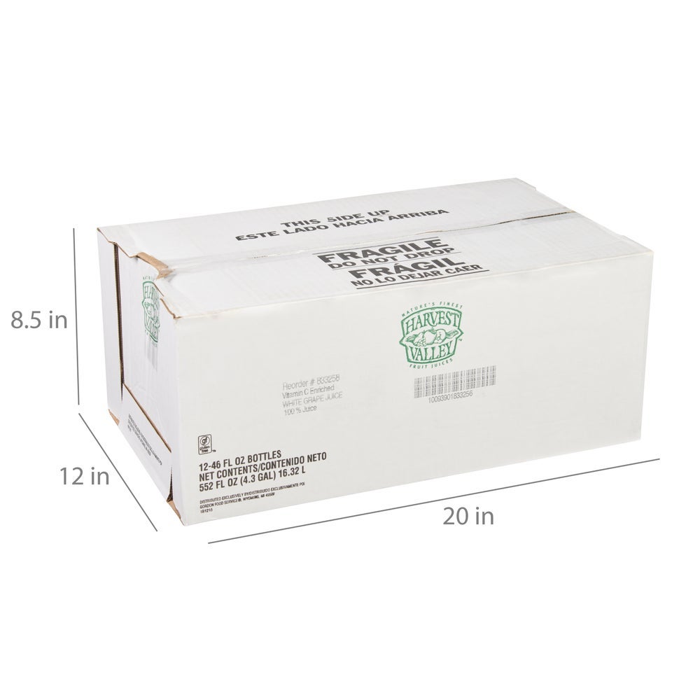 Harvest Valley 100% White Grape Juice, Made From Concentrate , Shelf-Stable, 46 Fl Oz Bottle, 12/Case