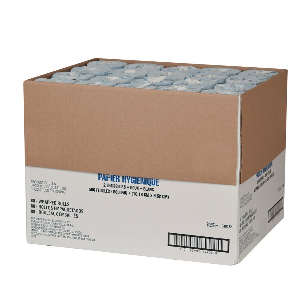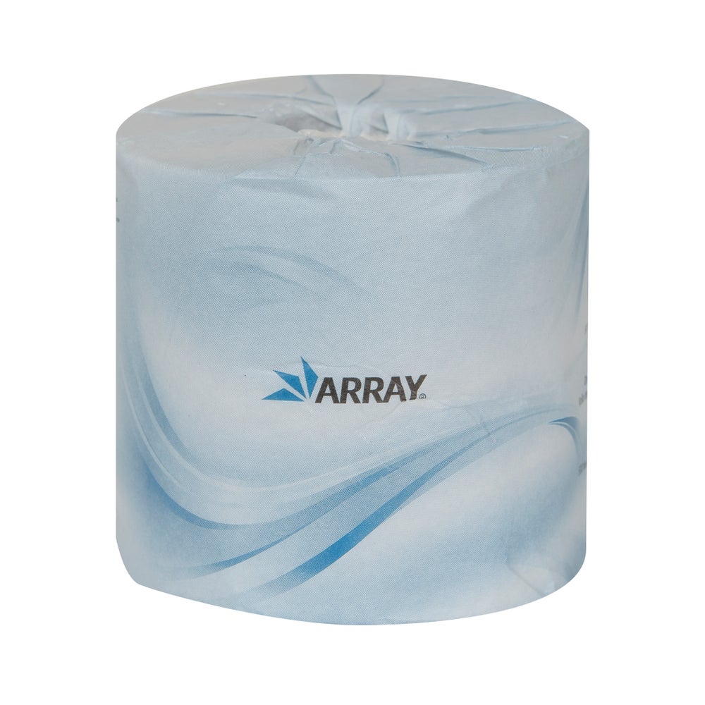 Array 2-Ply Embossed Standard Roll Toilet Tissue, White, 4 x 3.75 Inch Sheets, Individually Wrapped, 500 Ct Roll, 80/Case