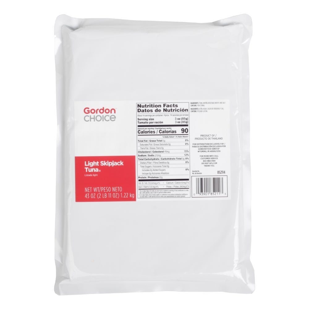 Gordon Choice Skipjack Tuna, Chunk Light in Water, Ready-to-Use, Shelf-Stable Pouch, 43 Oz Can, 6/Case