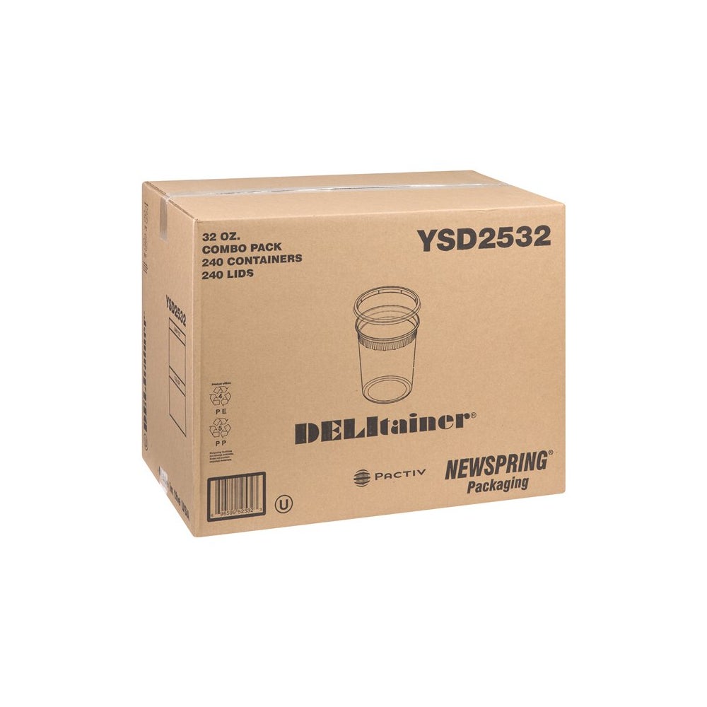 Delitainer 32 Ounce Microwaveable Plastic Containers, Clear, with Lids, Polypropylene, 24 Ct Package, 10/Case