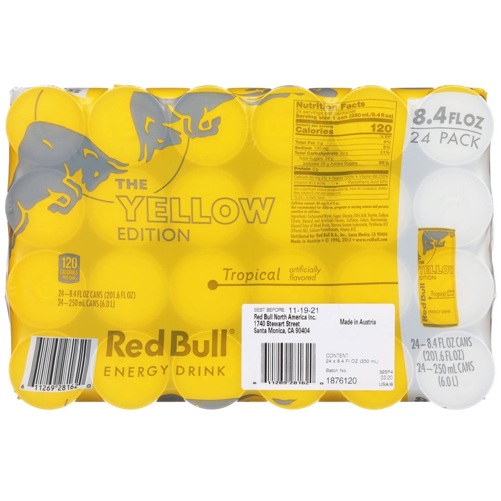 Red Bull Yellow Edition Energy Drinks, Tropical Fruit, Single-Serve, 8.4 Fl Oz Can, 24/Case