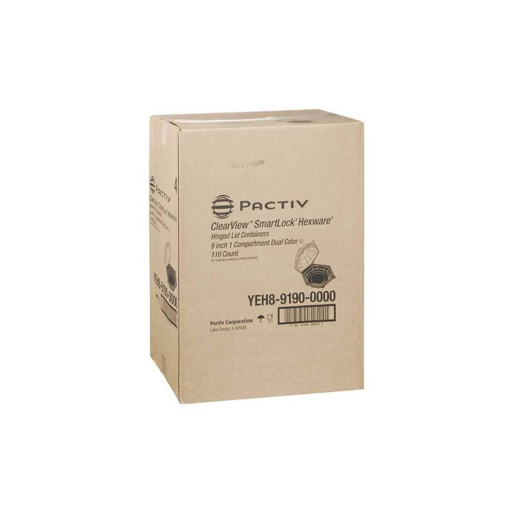 Pactiv 9 Inch Plastic Containers, Black, Hexagonal, Hinged, Polystyrene, 110 Ct Package, 1/Case