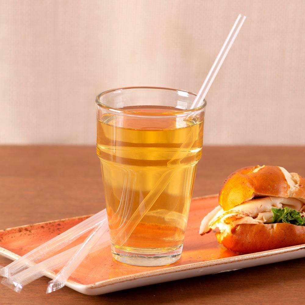 - Translucent 7.75-inch straws are individually wrapped in plastic sleeves. They are convenient to offer one with a beverage, place at tableside with beverages or for the wait staff to carry in their pockets. They stand well om the beverage condiment table and will remain clean until used.