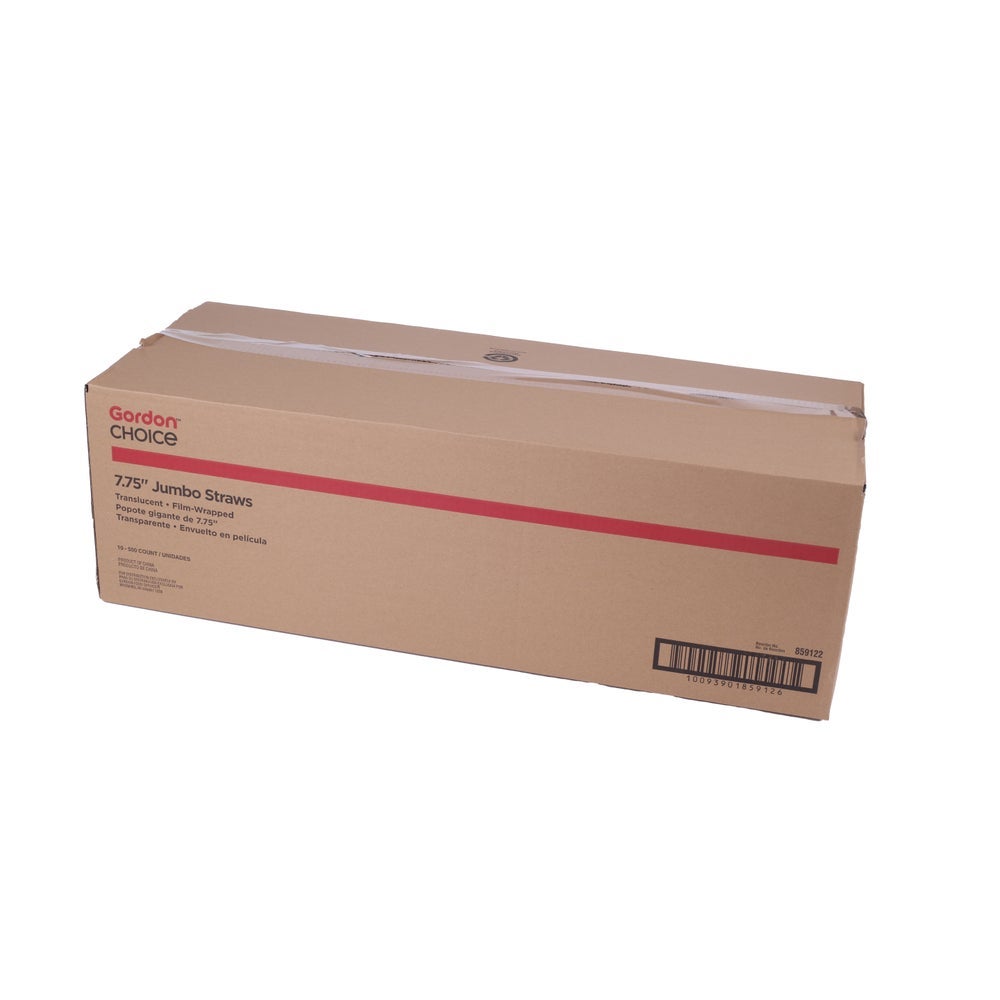 Gordon Choice 7.75 Inch Plastic Jumbo Straws, Translucent, Film-Wrapped, Polypropylene, 500 Ct Box, 10/Case