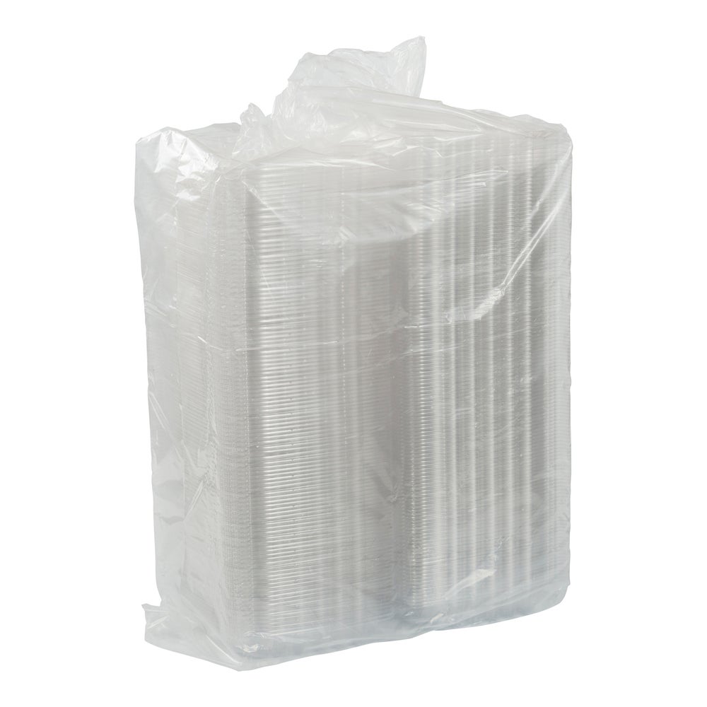 Dart 8.3 x 8.3 x 3 Inch Plastic Containers, Clear, Hinged, Polystyrene, 250 Ct Package, 1/Case