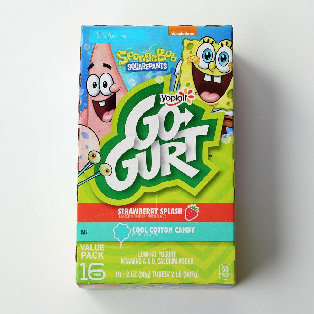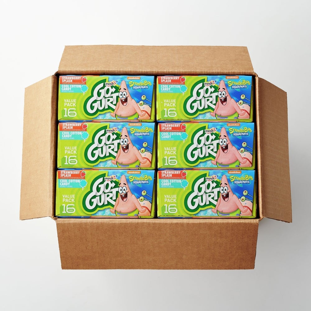 Go-Gurt Low Fat Strawberry & Cotton Candy Yogurt, Tube, Variety Pack, 2 Ounce, 16 Ct Box, 6/Case