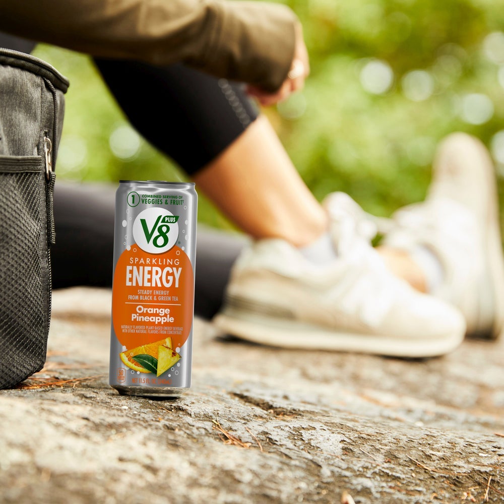 V8 Sparkling Energy Orange Pineapple Drink, Shelf-Stable, Single-Serve, Can, 11.5 Fl Oz Can, 12/Case