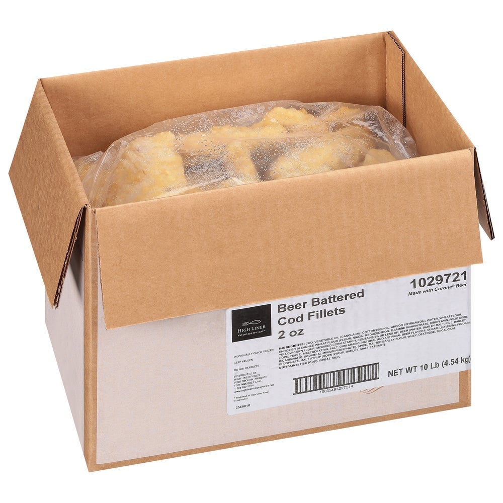 High Liner Foods Corona Beer Battered Cod, Natural-Cut, 2 Ounce Average, Raw, IQF, 10 Lb Bag, 1/Case