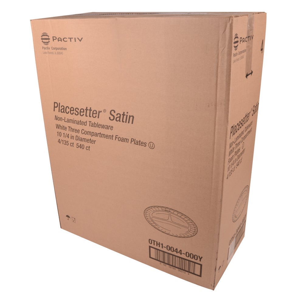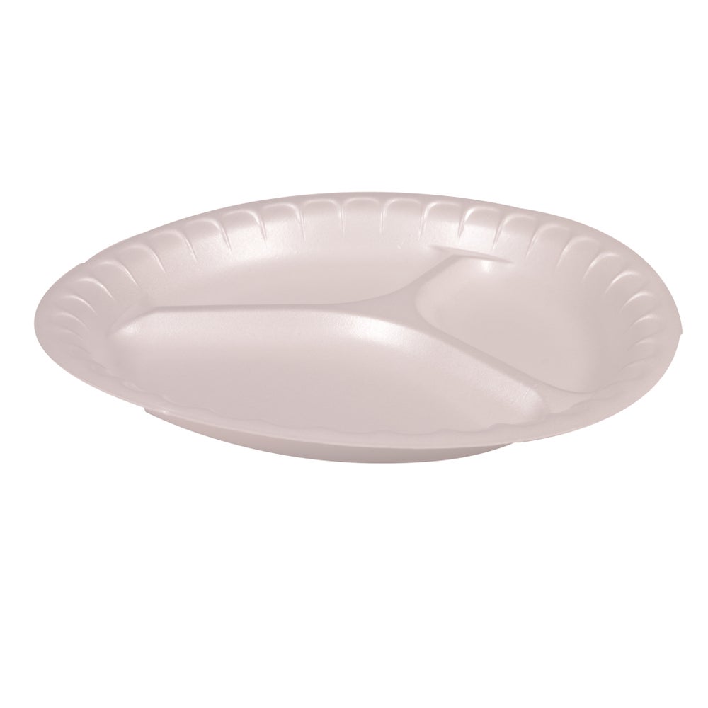 Pactiv 10.25 Inch Foam 3-Compartment Plates, White, Polystyrene, 135 Ct Package, 4/Case