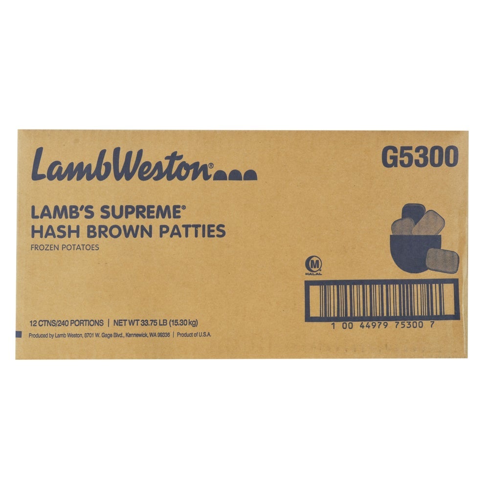 Lamb's Supreme Patty Hash Browns, Frozen, 2.25 Ounce, 20 Ct Tray, 12/Case