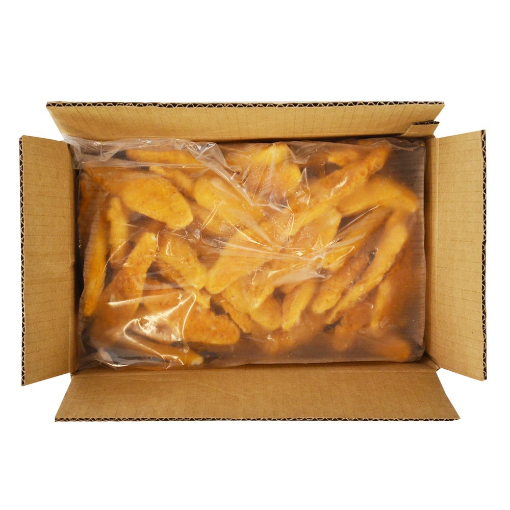 Brakebush Gold'n Spice Breaded Chicken Breast Strips, Portioned, Cooked, Individually Quick Frozen, 5 Lb Bag, 2/Case