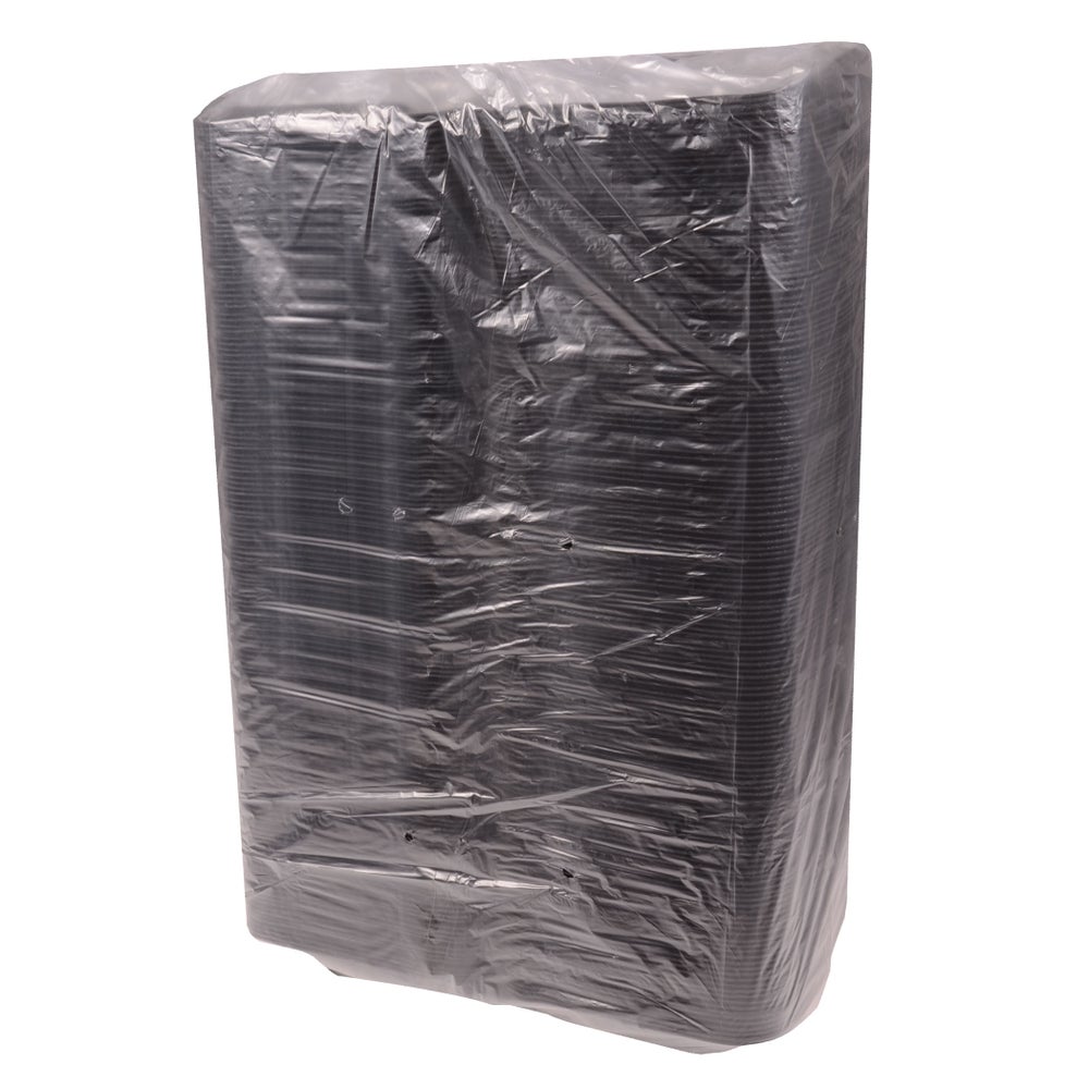 Pactiv Medium 8 x 8.5 x 3 Inch Foam 1-Compartment Containers, Black, Hinged, Polystyrene, 150/Case