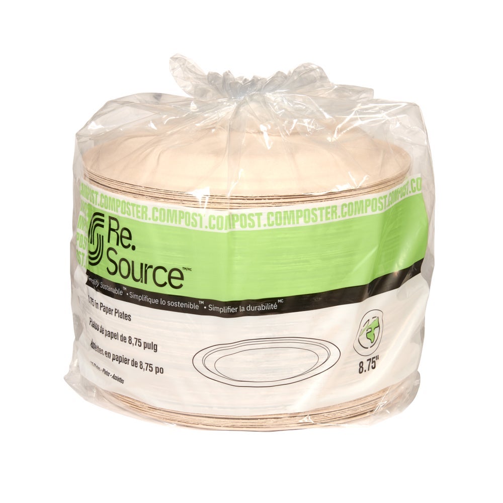 Re.Source 8.75 Inch Molded Fiber Plates, Natural Color, Compostable, 125 Ct Package, 4/Case