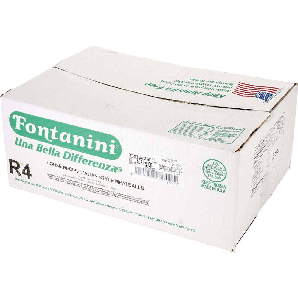 Fontanini Gourmet Italian Beef & Pork Meatballs, with Parmesan & Ricotta Cheese, 2 Ounce, Frozen, 9 Lb Tray, 1/Case
