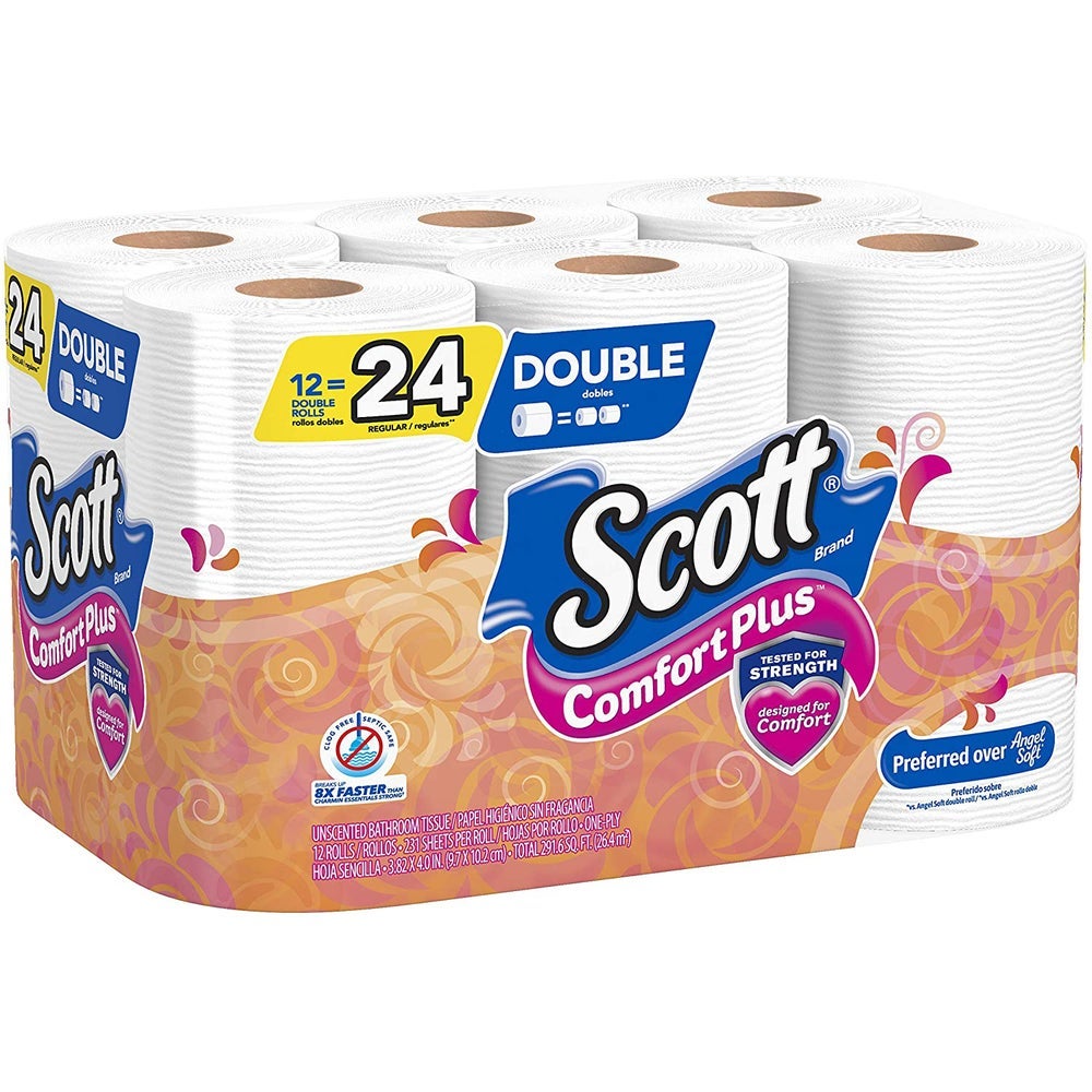 Scott Comfort Plus 12 Double Rolls = 24 Regular Rolls Double Rolls Toilet Tissue, 12 Ct Package, 4/Case