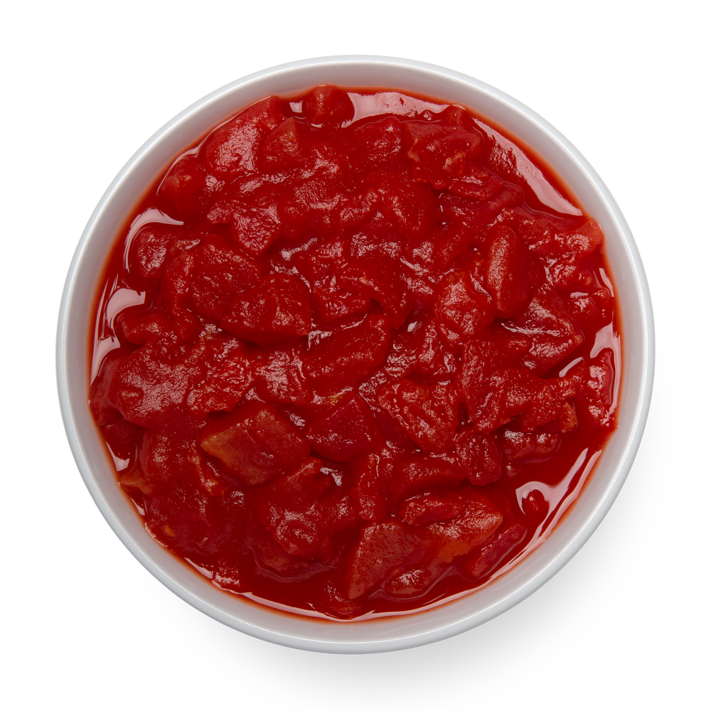 - Los tomates en dados se pelan antes de enlatarlos en jugo. Este es uno de los productos de tomate de la más alta calidad.