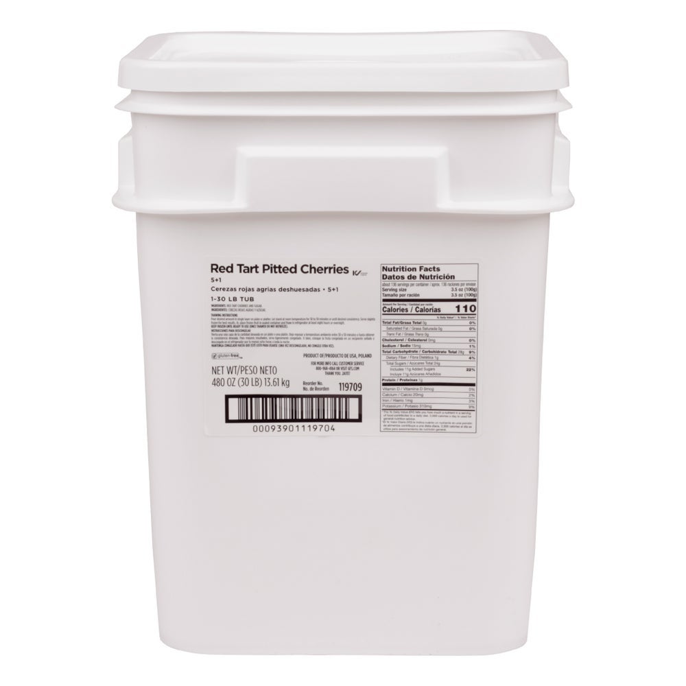 Cherries, Red Tart, in Sugar, Pitted, Grade A, Frozen, 30 Lb Pail
