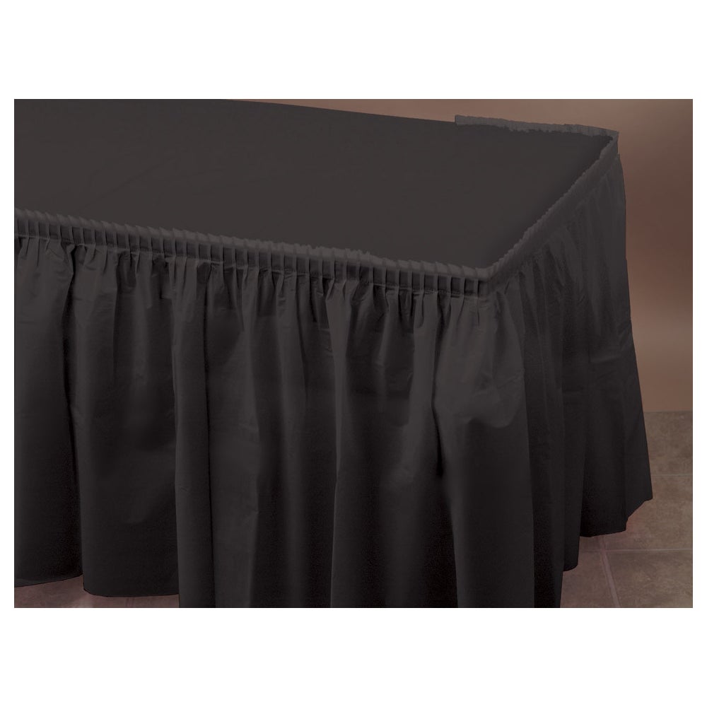Manteles de mesa de plástico negro de 14 pies x 29 pulgadas con cinta autoadhesiva adjunta