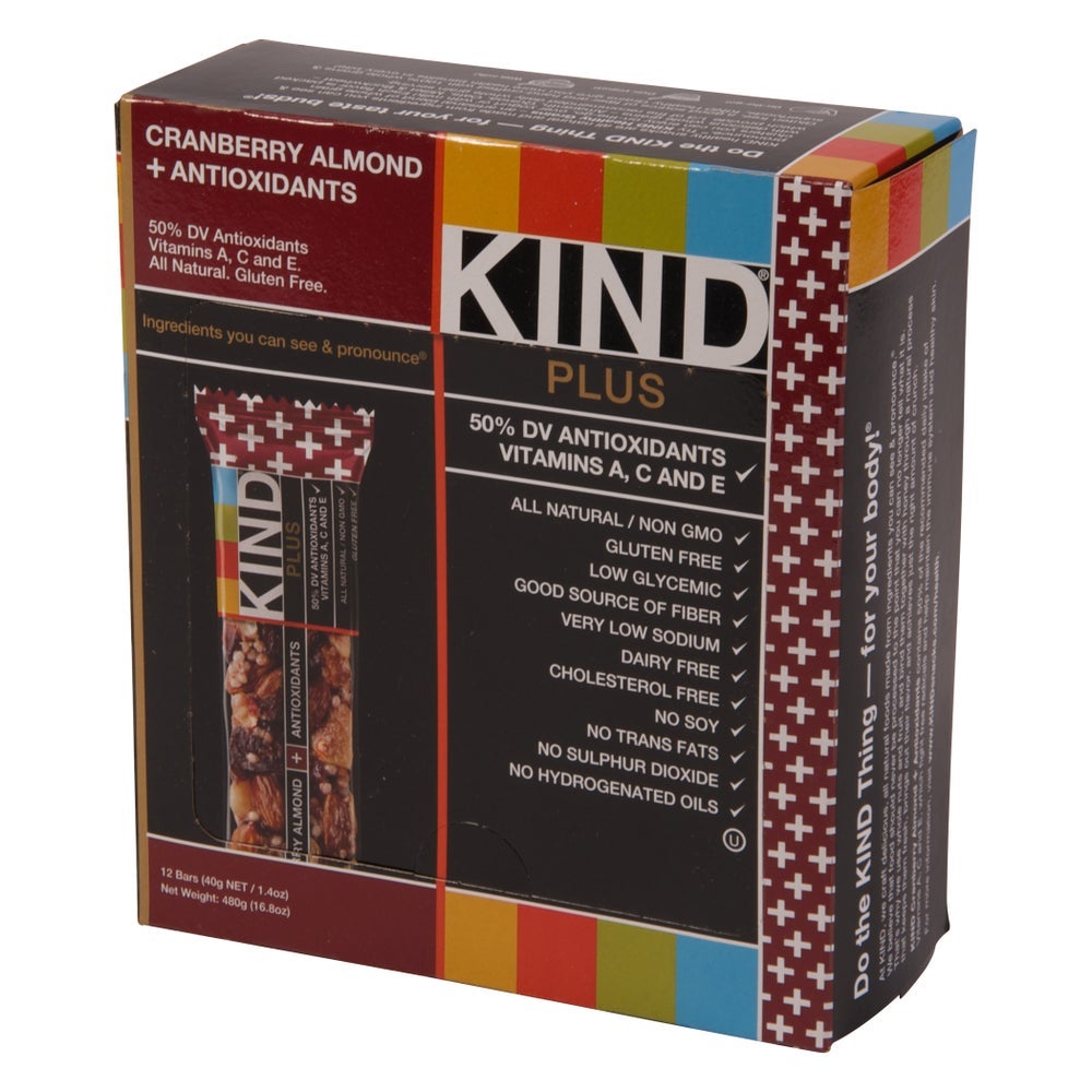 Barras de arándano rojo y almendras, 1.4 oz, 12 Cdd Cjs, 6/Caj