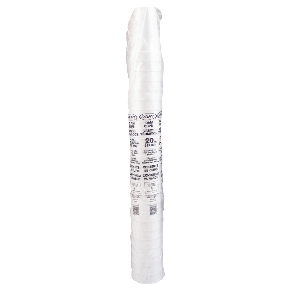 Vasos de espuma calientes y fríos de 20 onzas, blanco, con cuentas, poliestireno, 25 Cdd Paq, 20/Caj