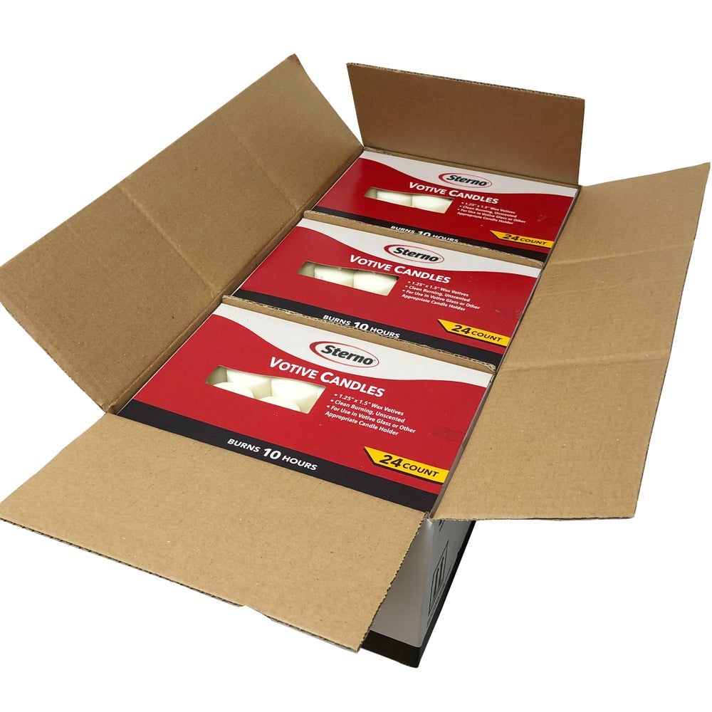 Velas votivas de 10 horas, crema, 24 Cdd Paq, 12/Caj