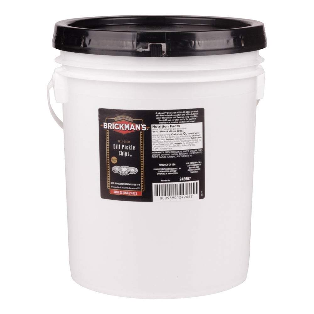 Rodajas de pepinillos kosher Dill en corte ondulado, caja con 1000 a 1100 piezas, Refrigeradas, Plástico, 5 Gal Cbt, 1/Cbt