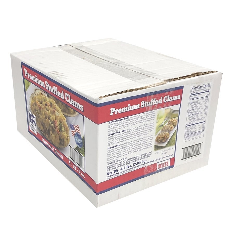 Almejas rellenas, silvestres, 2 onzas de relleno, concha natural, Consejo de Administración Marina, crudas, congeladas, 12 Cdd Ban, 3/Caj