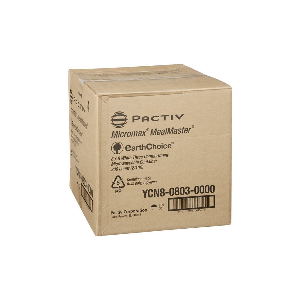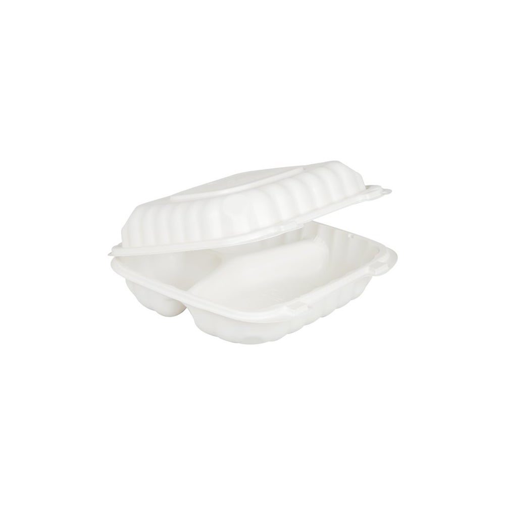 Recipientes de 8 x 8 pulgadas con 3 compartimientos, blanco, con bisagras, polipropileno relleno mineral