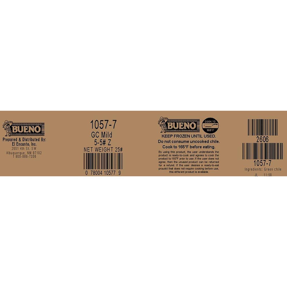 Chiles verdes suaves cortados en trozos, congelados, 5 Libr Cjs, 5/Caj
