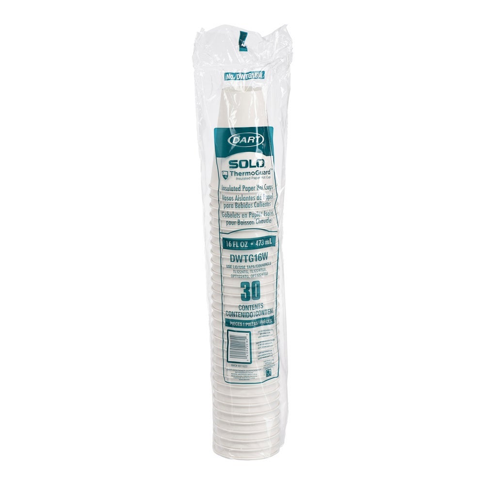 Vasos de papel para bebidas calientes, de 16 onzas, blanco, aislado, 16 onzas, 30 Cdd Paq, 20/Caj