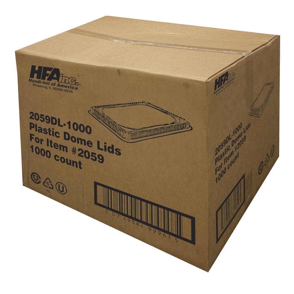 Tapas de domo plásticas, transparente, poliestireno orientado, para recipientes de aluminio rectangulares de 1 libra, 1000 Cdd Bol, 1/Caj