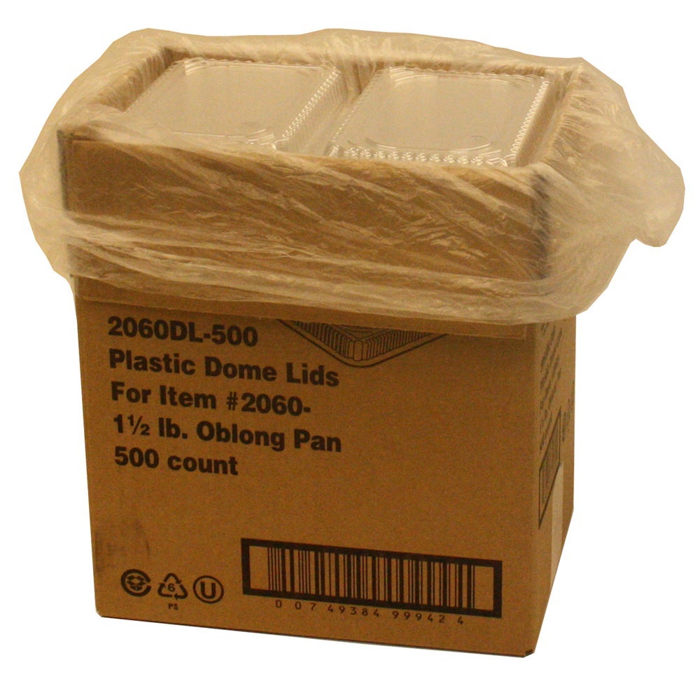 Tapas de domo plásticas, transparente, poliestireno orientado, para recipientes de aluminio rectangulares de 1,5 lb, 1 Cda, 500/Caj