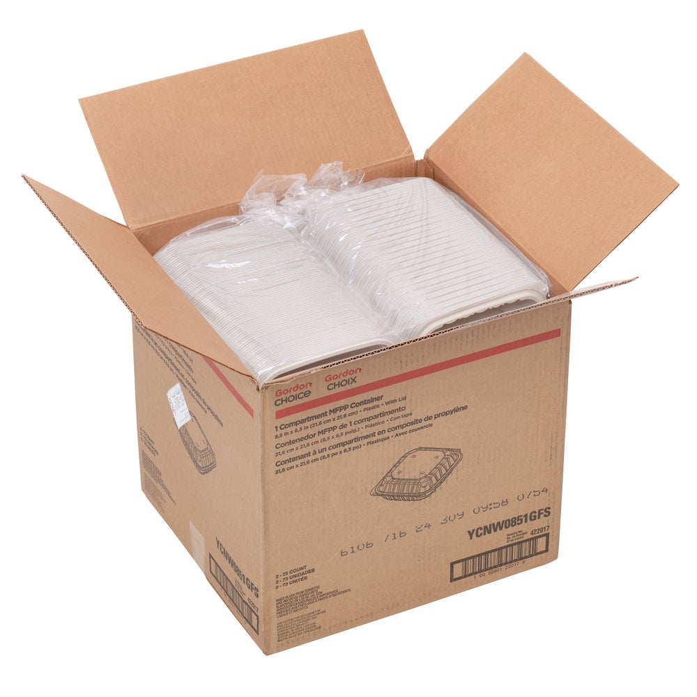 Contenedores de 8,5 pulgadas de plástico con 1 compartimiento, blancos, polipropileno con relleno mineral, 73 Cdd Bol, 2/Caj