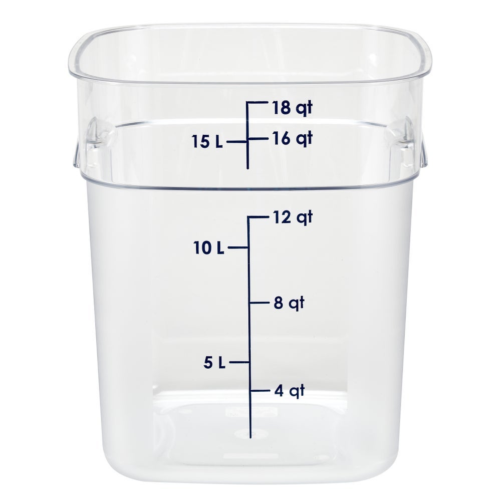 Recipiente cuadrado de almacenamiento para alimentos, transparente, policarbonato, 18 cuartos, 1/Cda