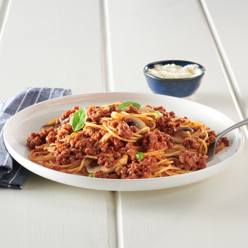 - Carne molida de res, cocida uniformemente, con un toque de sazón y especias.