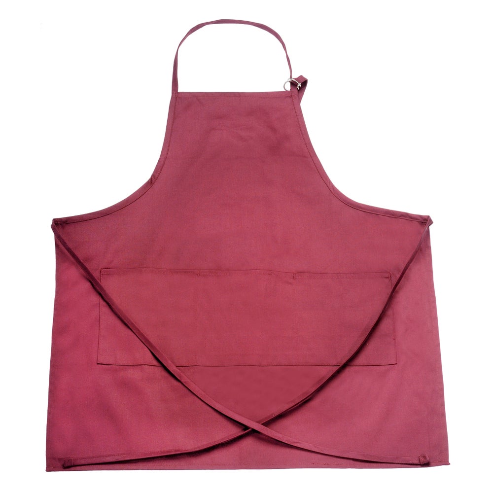 Delantal de pechera con 3 bolsillos, color borgoña, 26 x 31 pulgadas, 100 % poliéster hilado, con hebilla ajustable en la correa para el cuello, 1/Cda