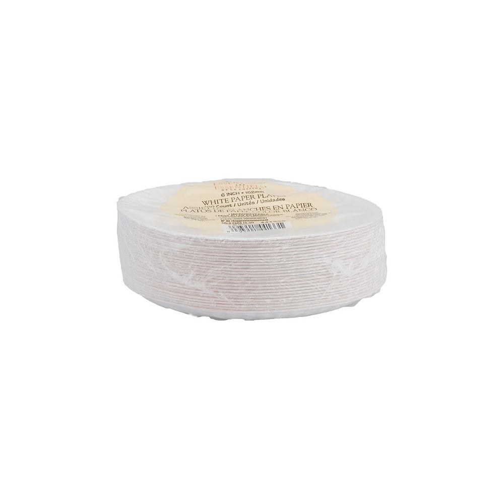 Platos de papel sin revestimiento de 6 pulgadas, blancos, 100 Cdd Paq, 10/Caj