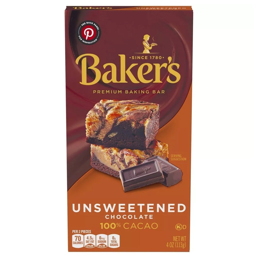 Chocolate para hornear sin endulzar de Bar, 4 Onz Cda, 12/Caj