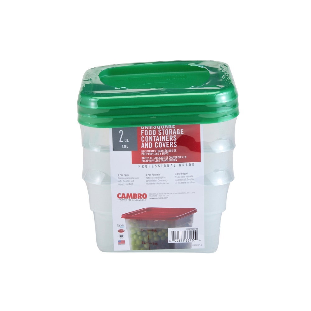 Contenedor de alimentos de 2 cuartos, cuadrado, translúcido, de polietileno, con tapa, 1 Cda, 3/Paq