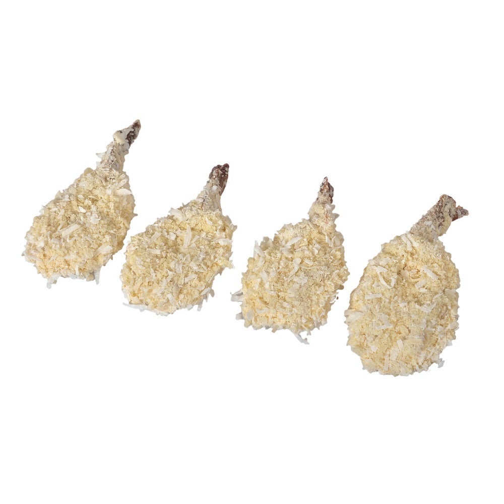 Camarones, rebozados con coco, con cola, 16-20 unidades por libra, crudos, congelados, 2.5 Libr Cjs, 4/Caj