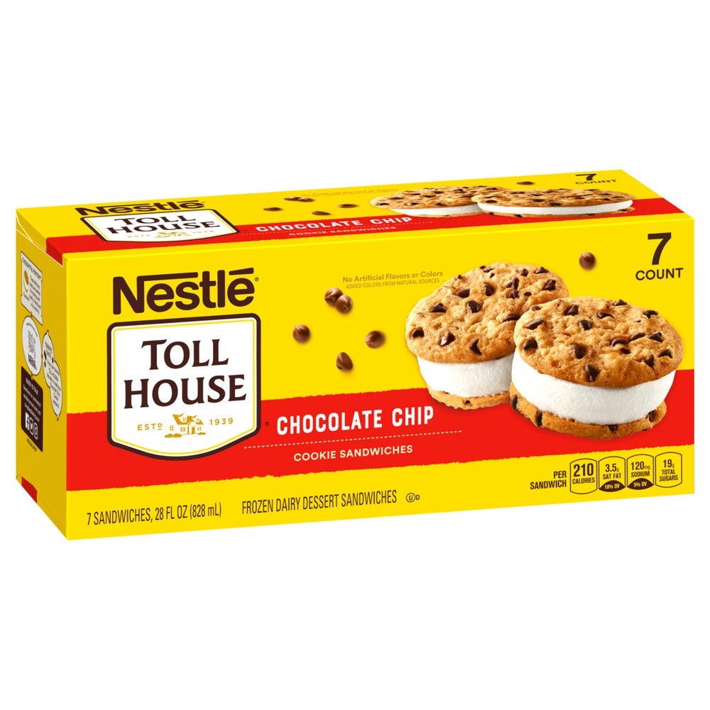 Sándwiches de helado de galletas con chispas de chocolate, envueltos individualmente, congelados, 4 onzas líquidas