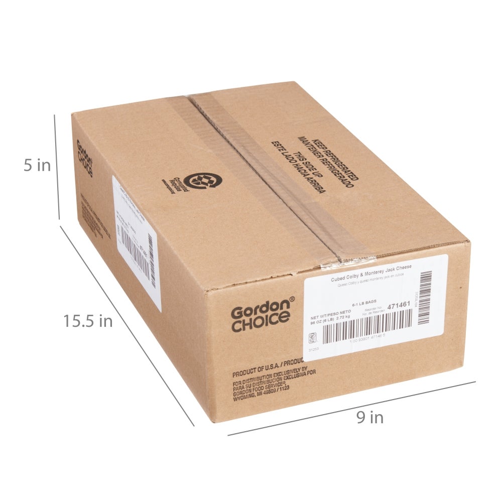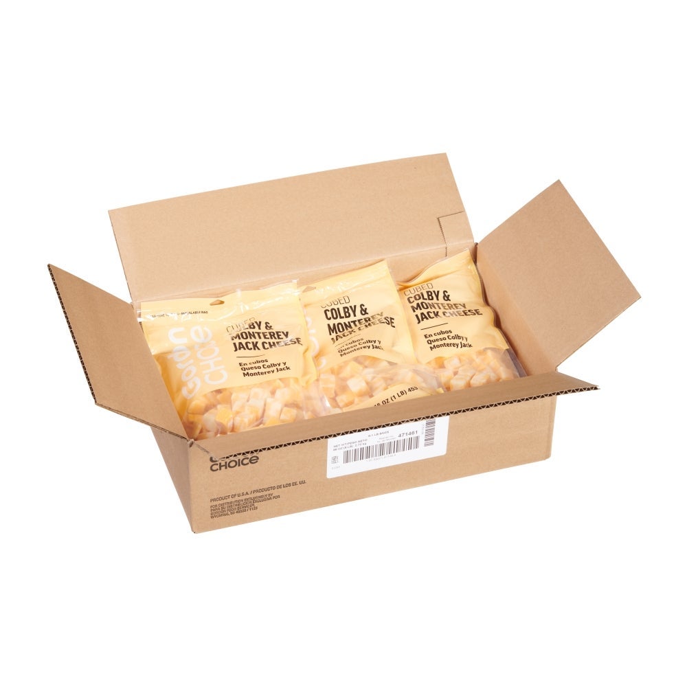Queso Colby Jack, cortado en cubos de 0.75 pulgadas, 1 Libr Bol, 6/Caj