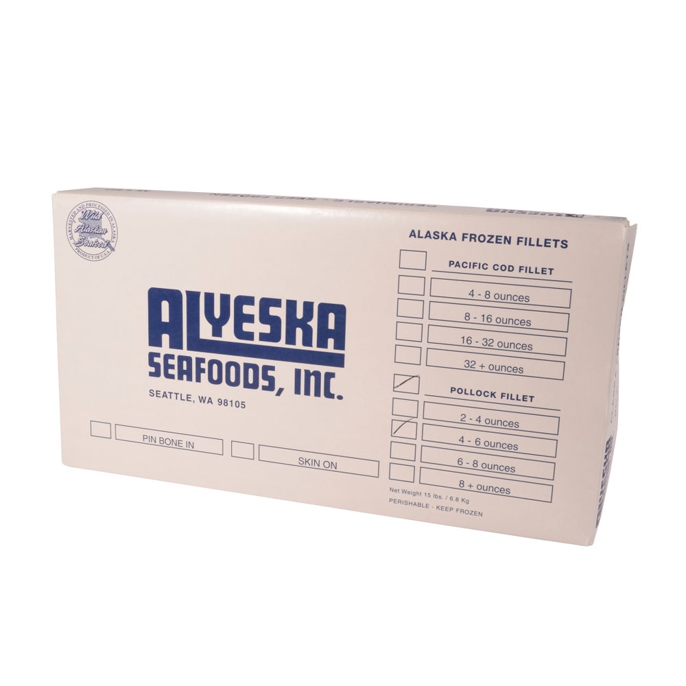 Filetes de abadejo de Alaska, capturados en la naturaleza, deshuesados y sin piel, 4-6 onzas, crudos, paquete roto una vez congelado, 15 Libr Cjs, 3/Caj