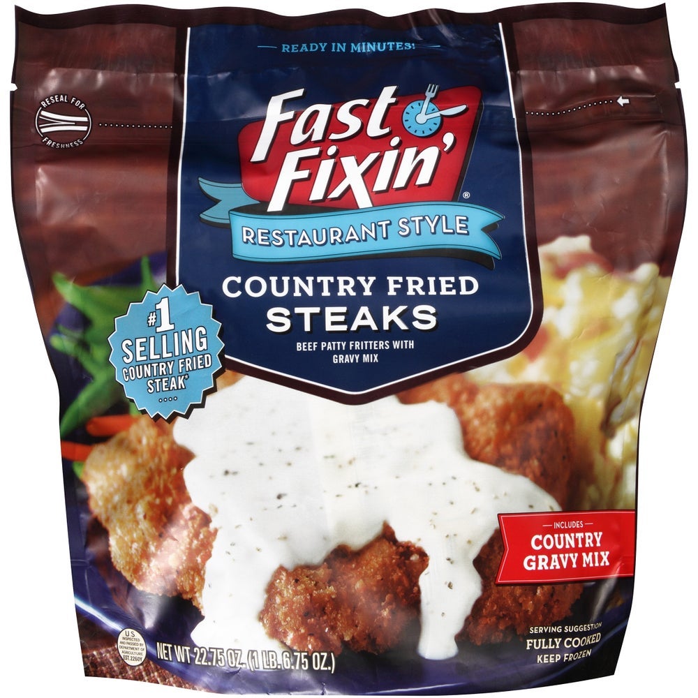Bistecs de carne frita estilo campestre, con mezcla de gravy