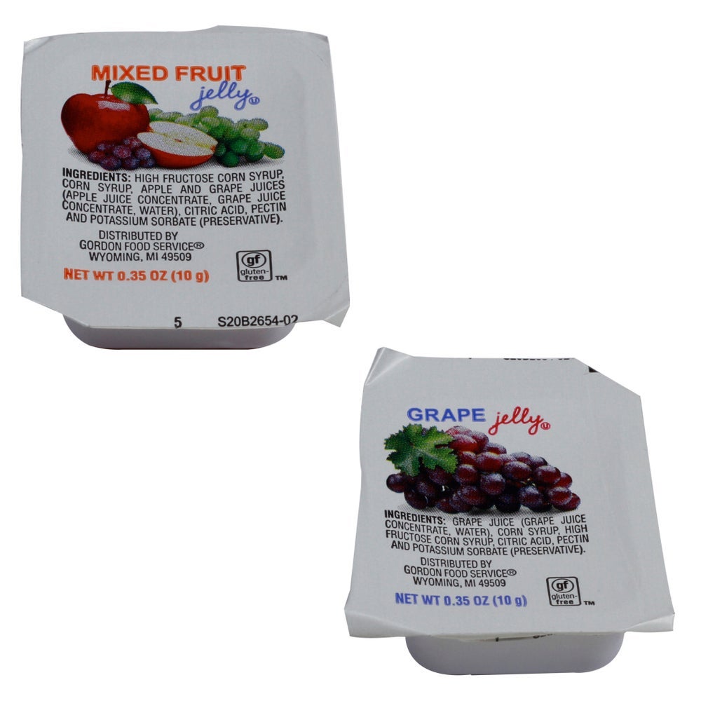 - Este surtido de vasitos de gelatina individuales incluye 120 paquetes de gelatina de uva y 80 de frutas mixtas para la mesa.